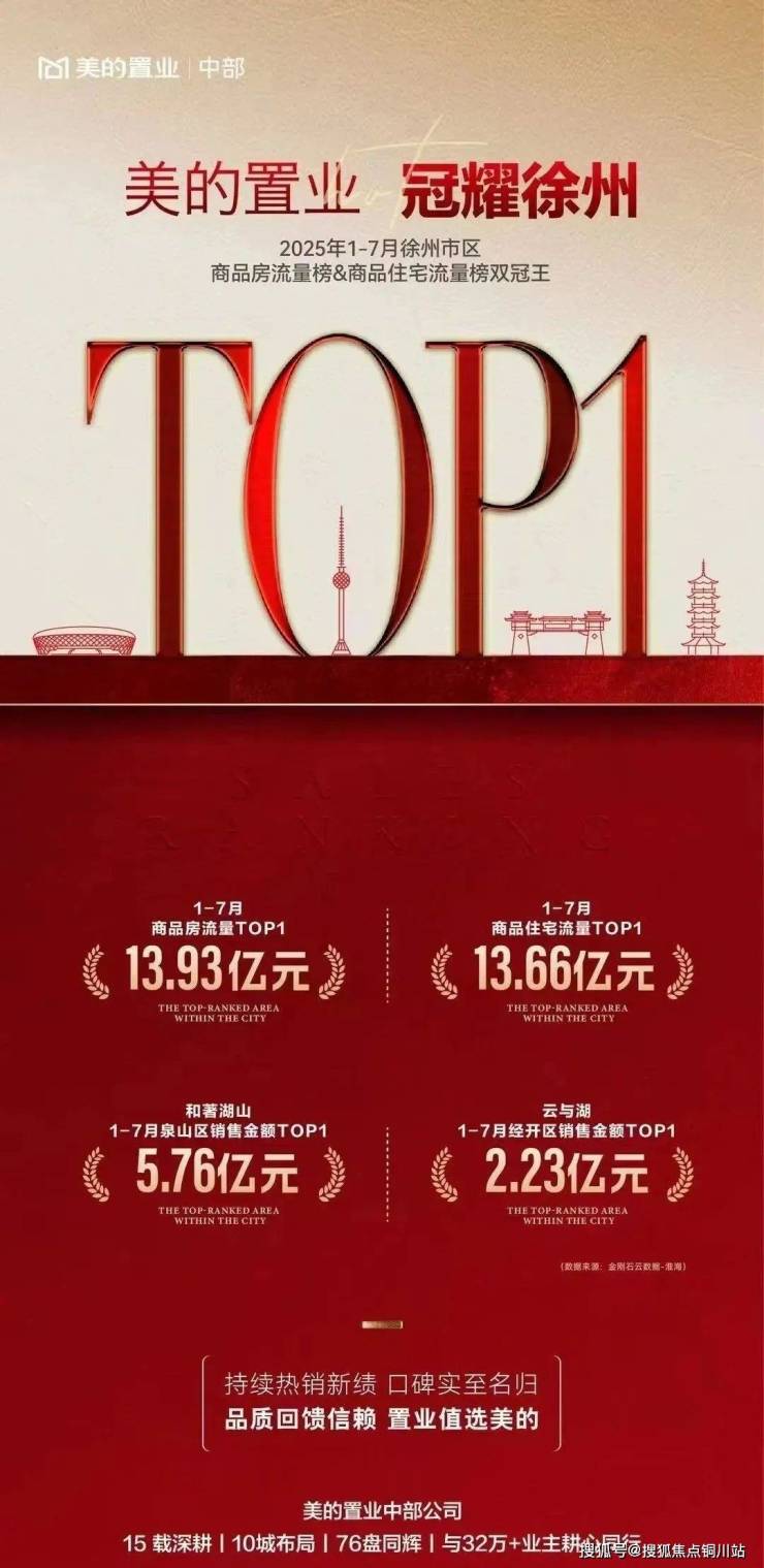 就在刚刚过去的2025年1-7月,美的置业冠耀徐州!荣获2025年1-7月徐州市区商品房流量榜&商品住宅流量榜双冠王!(数据来源:金刚石)
