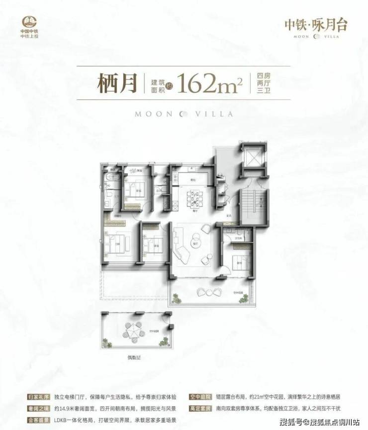 中铁·咏月台创新规划建面约162/164㎡四代洋房,以奇偶层错位的巧妙布局,为每户规划景观露台,实现空中花园的居住梦想。这既是一次对居住形制的革新,更让人与自然达成诗意共鸣。