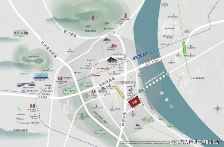 休闲配套:直线距离钱塘江约800米,周末清晨在钱塘江绿道晨跑4,下午去西面的4A级景区铜鉴湖公园打卡。