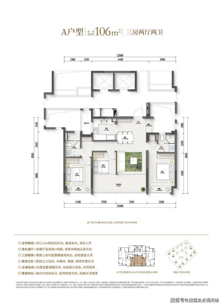 建面约106-109㎡三房两卫:面向年轻家庭的入门即改善户型;建面约128㎡四房两卫功能性一步到位,适合成长型家庭。建面约139㎡及以上户型:舒适改善之选,满足多代同堂的高品质居住需求。