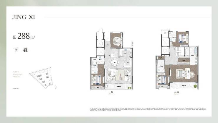上叠约50㎡星空露台,打造云端私享会客厅;下叠奢配约80㎡私家庭院,莳花弄草演绎东方院落美学。