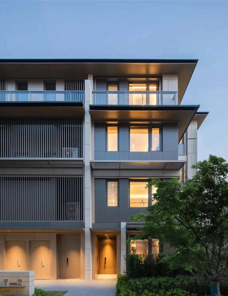 在外立面设计上,项目巧妙融合了新中式与仿宋建筑风格,采用铝板与仿瓷石板作为主要建材,匠心独运地勾勒出当代苏式美学的独特韵味。