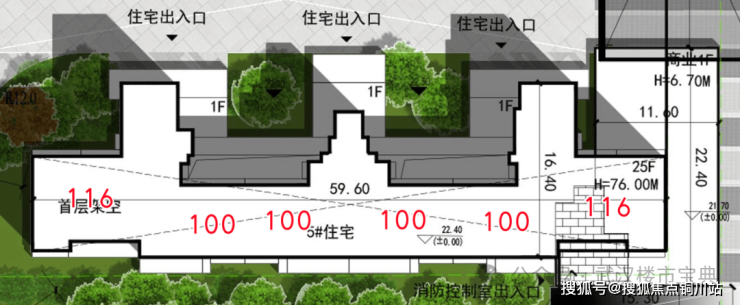 25层,2个户型,建面约100㎡和116㎡,三梯六户