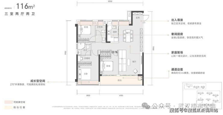 2.带270度拐角飘窗,6.7米的超大阳台,阳光充足