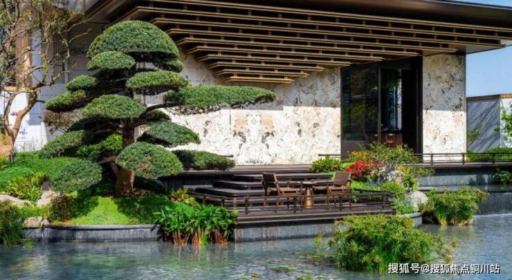 430㎡锦鲤池畔的“味象亭”,四季花植、50年树龄罗汉松与拱桥、亭台、水榭交织成“立体江南”。