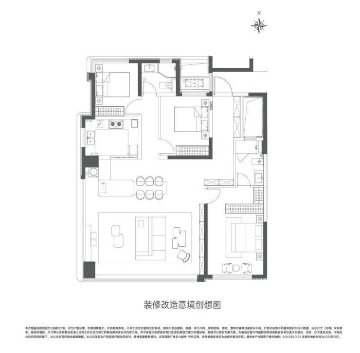 开间约7.4米,进深约7.2米,全景餐客厅,打造多变大空间超大弹性空间。
