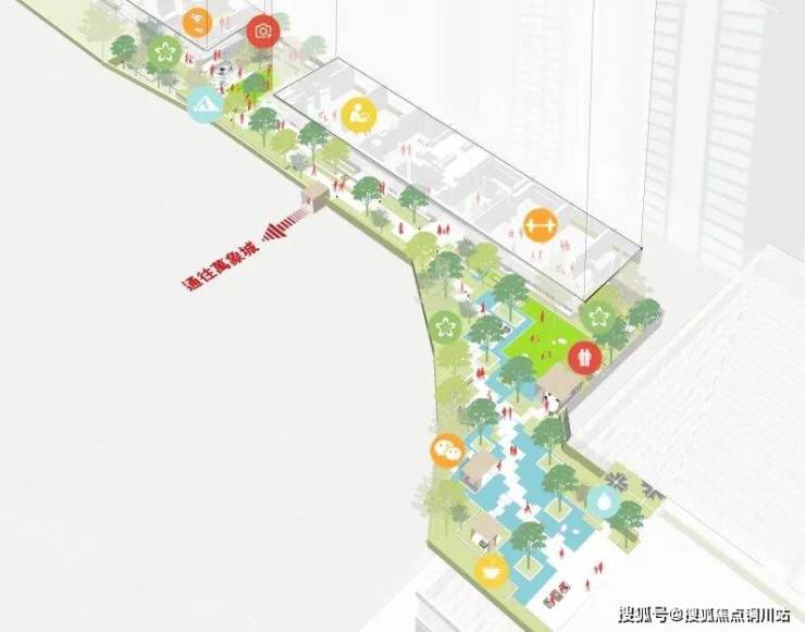 以“内外无界”为设计内核,大胆消弭传统边界。屋顶花园化身城市阳台,衔接万象城出入口,实现商业繁华与私属领地的丝滑过渡。葱郁自然与架空层生活场景无间渗透、对话,引绿入室。建筑不再割裂自然,而是成为承载垂直绿洲的媒介,向上延伸,与天际线交织,与城市对话。