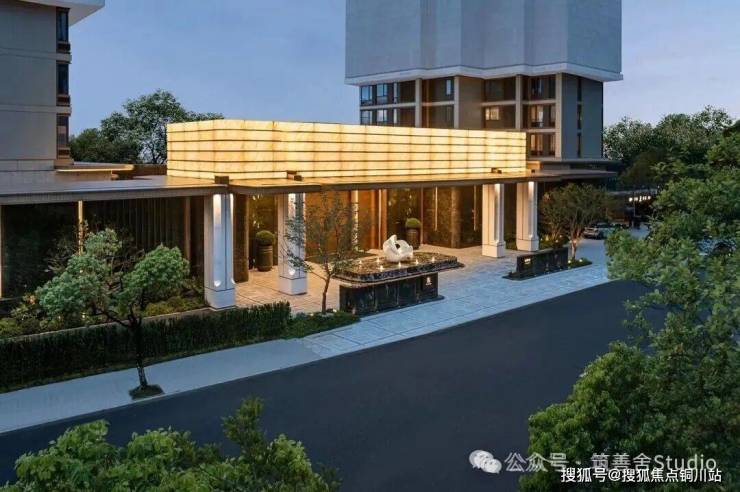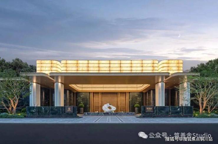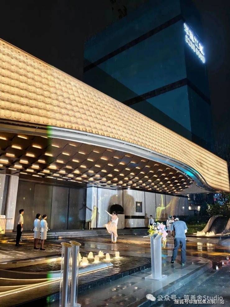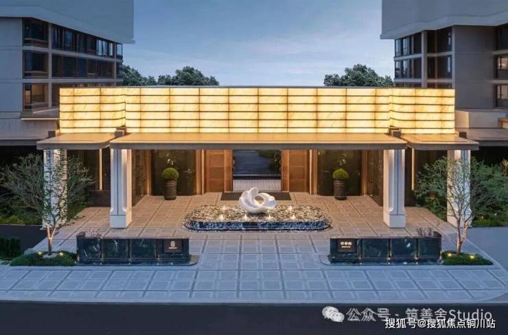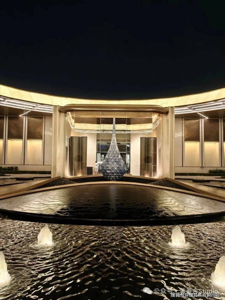 举目远眺,一幢横亘50米、挑高7.5米的尊贵归家之门——【百合门庭】赫然展现,据说项目灵感源自成都岷江百合的盛开之姿,巧妙融入流畅的弧线设计。门庭正面精选潘多拉石与汉白玉的奢华石材,辅以黑色黄金丝绸般的光透石,灯光辉映之下,尽显石材之华贵、水波之粼粼、灯具之细腻,营造出一份归家的至高荣耀感。