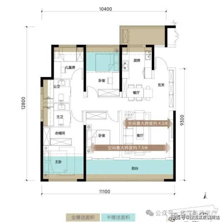 1号楼还创新推出了这款建面约103㎡的户型
