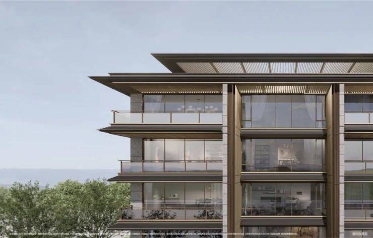 🔹同步国际美学思潮,打造绿城新一代“无边框曲面屏”,采取0.35-0.6超高窗地比设计,嵌入巨幕玻璃窗,呈现无界风景视野;建筑轮廓配以金属质感线条,彰显华贵之弧,映衬湖岸之上极具昭示性的无界天幕。