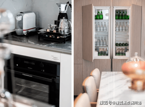 厨房加赠了嵌入式冰箱及蒸烤箱。