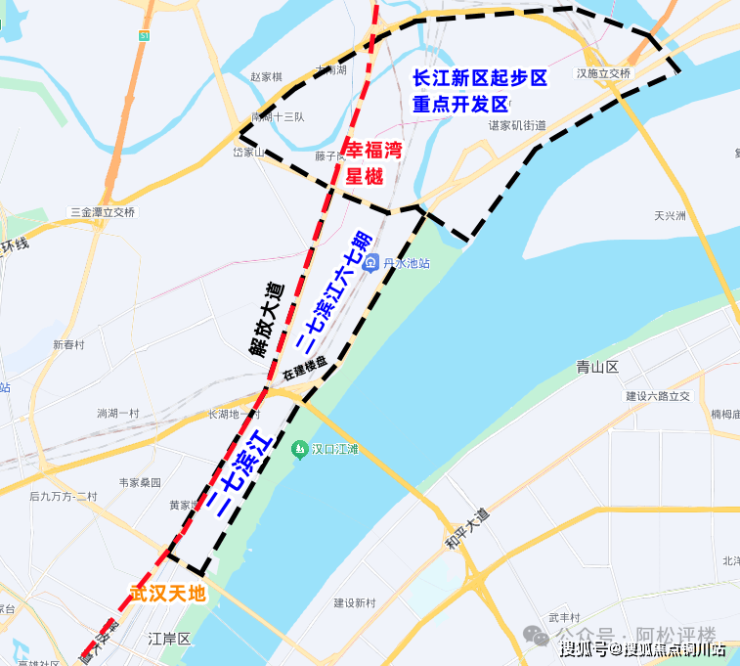 该地段还有一个闪光点,就是二七滨江门户区与长江新区起步区的超级红利区。二七滨江国际商务区一路向北,是大势所趋。长江新区起步区大规模建设也在此地。两大红利区叠加,汉口主城顶流潜力区非此莫属。