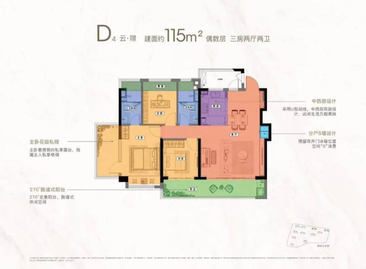 建面约115㎡(三房两卫)|115边户满足130的空间居住体验|露台设计(分奇偶层)