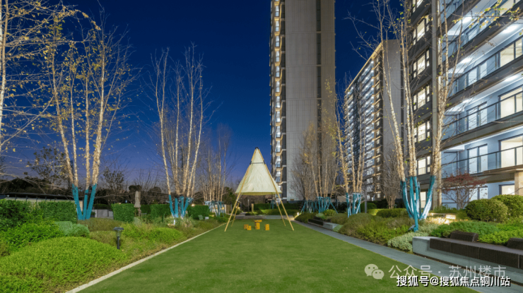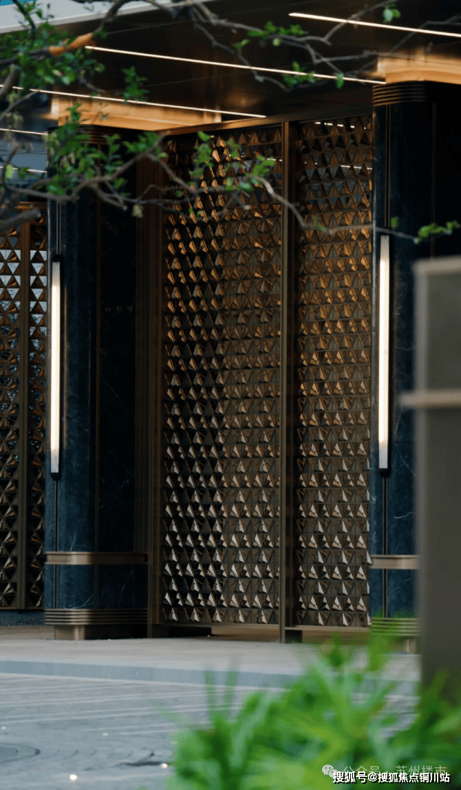 每个单元都有专门设计的入户景墙,专属定制灯箱,搭配多层次花境植被,这样的细节感,在整个苏州楼市并不多见。