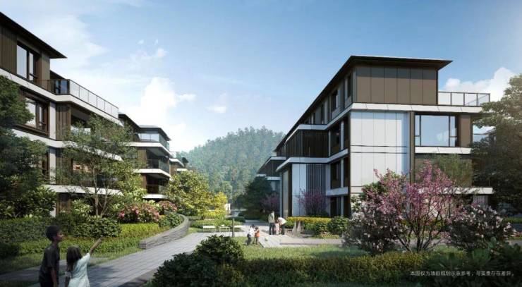 建筑设计:社区建筑采用新中式坡屋顶设计,外立面大面积使用玻璃幕墙与铝板,与周边山体轮廓形成自然对话,既展现了中式建筑的韵味,又融入了现代建筑的简约大气。