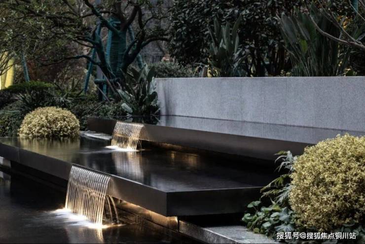 相比原方案,北侧社区大堂景观追加60多万元,提升肉眼可见。归家小院点缀红枫、乌桕,闹中取静。一体化黑山石水景矗立在入口处,不锈钢手工锻造的小猫栩栩如生,河北墨玉石由匠人手工凿开,层层叠叠,铺陈出质朴而规整的美感。