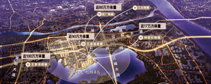 旭辉半岛和岸所在的墨水湖板块发展成熟,周边社区众多,底商配套丰富,中百仓储、早餐店、小吃店、药店、生鲜超市等一应俱全,能够满足居民的基本生活需求。大型商业配套方面,主要集中在王家湾商圈,距离项目 2 公里内,拥有摩尔城、大洋百货、汉商、海天欢乐购等商业综合体。同时,项目距离五里墩商圈也在 2 公里内,万科未来中心 11.7 万㎡商业与 5.3 万㎡垂直商办已签约众多主力店。此外,距离钟家村归元寺商圈约 4 公里,规划中的 17 万方大体量开放式、低密度商业步行街,也将为区域商业发展注入新活力,全方位满足居民购物、娱乐、餐饮等多元需求。