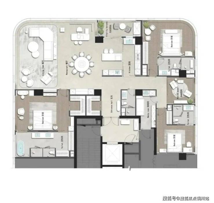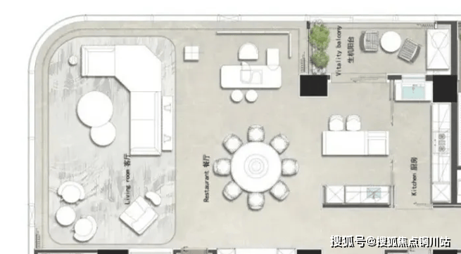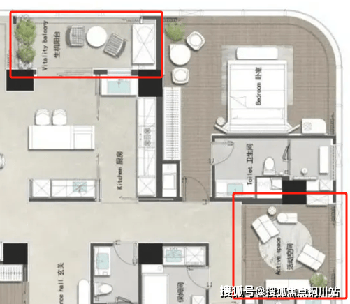 生活阳台,活动空间,为户型增加了多元化的场景体验,同时极致地发挥了江景的优势。