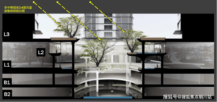从上往下看,4层叠水空间景观,3级站台落客系统,双会所体系,宛如新加坡樟宜国际机场,潺潺的流水从天而降,一幅满怀自然生机的立体森境呈现在我们眼前,成为驻留、漫步、欣赏的生活新地标。