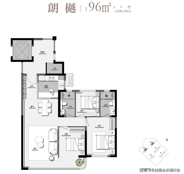 ①建面约96平:大三房两卫!可享独立电梯前室!