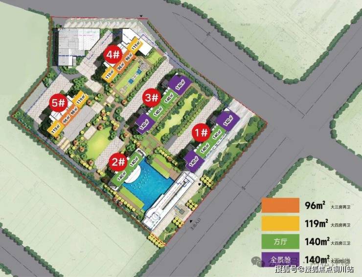 如1号楼、2号楼都紧邻大门和下沉式会所,视野几乎无遮挡,进出小区也更便捷;为了确保1号楼的舒适度,项目与主干道之间整体后退超30米;3、4、5号楼东南向都规划了中央园林,5号楼东南向楼间距高达约70米,景观视野都很赞。