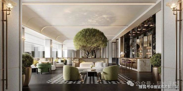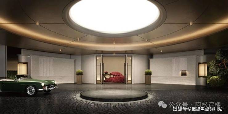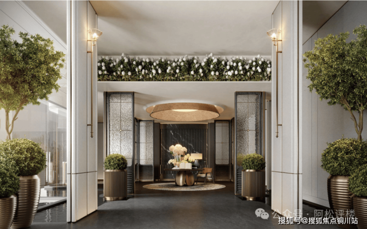 如奢阔豪宅式大门。项目大门宽约57米,高约8.8米,采用精装石材与金属线条结合,奢华大气。门口还规划了水景、环岛落客区、艺术橱窗等。建成后必然不输头部豪宅的排面。