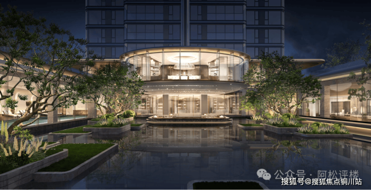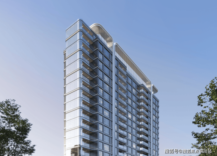 如公建化外立面。该项目楼栋东南向均采用大面积玻璃及铝板,使用弧线设计,质感、造型都是一绝。
