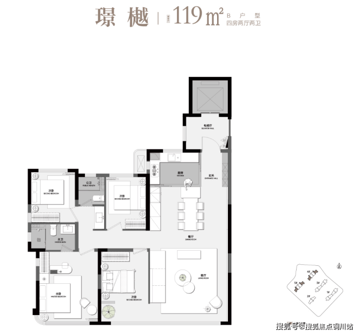 ②建面约119平 :南北通透大四房两卫!独立电梯入户!