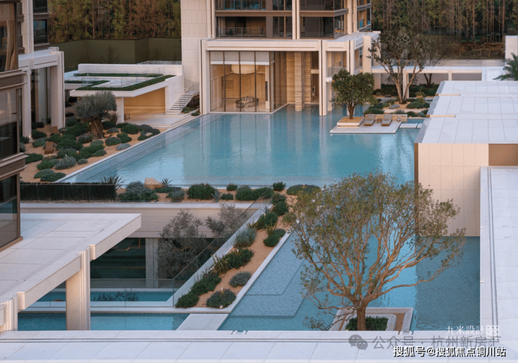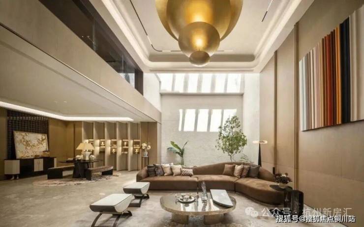 约43米恢弘门庭两侧黑松耸立,挑高约12米的归家大堂洒下尊崇感,钱塘江潮涌的曲线凝固在露台边缘,星河触手可及。