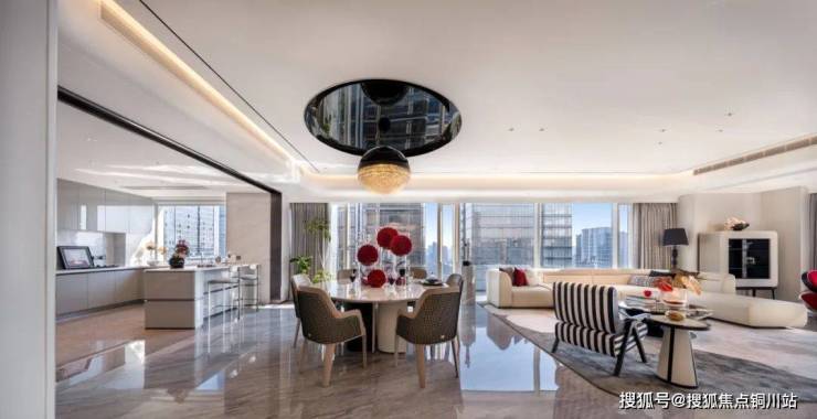 建面约330㎡皎玉湖畔,戴昆先生从玉湖中汲取设计灵感,以曲线模仿流水的幻化无穷,以劳伦黑金、芬迪白等奢石转译新石器时代的色彩意象,用空间撰写灵动而深邃的人文诗章。巨幕转角大边厅,营造双面环景视野,将中央园景尽收眼底。