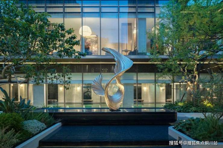 项目示范区引入艺术门廊、艺术大堂、下沉庭院、风雨连廊、单元大堂与琉璃光厅中心会所等,打造了一条正对长江的艺术景观轴线和丰富的酒店式体验归家流线。琉璃光厅中心会所为双层立体会所:含约2500㎡地上地下复合空间,涵盖恒温泳池、私宴厅、SPA秘境、瑜伽、健身房等多功能复合会所空间,同时搭配下沉庭院空间,将室外景观进一步延展,串联自然与社交。