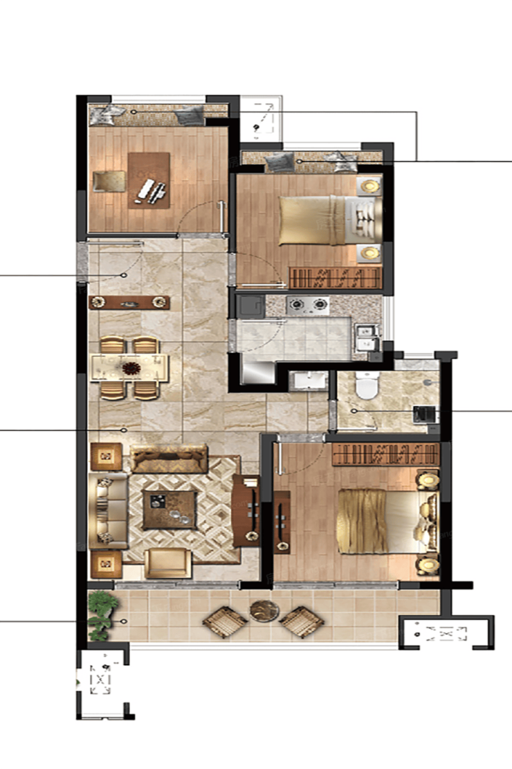 项目主力户型为建面约125㎡-177㎡的三房和四房户型。其中,建面约177㎡户型做到了3.1米层高,套房主卧,L型衣帽间,搭配双盆双浴设计。双面宽阳台,约8.6米拾趣阳台,约5.5米超大宽厅,南向套房卧室,搭配独立卫生间。