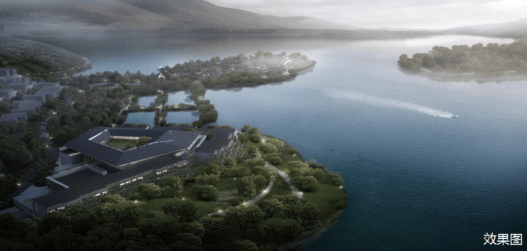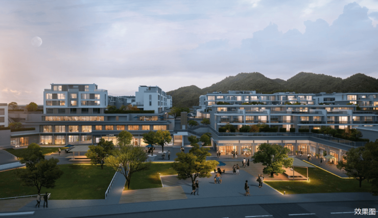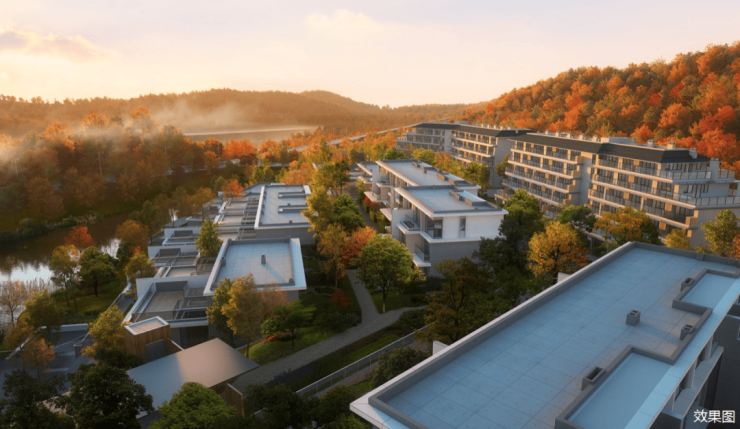 引清涧入社区,以沿湖步道框镜湖山之美,阔藏聚落广场、林间集市、度假酒店的闲情逸致。背靠山林,坐拥观湖,在保留原始树木的基础上,以山之韵林之美围合自然中庭,将四季藏于园境。