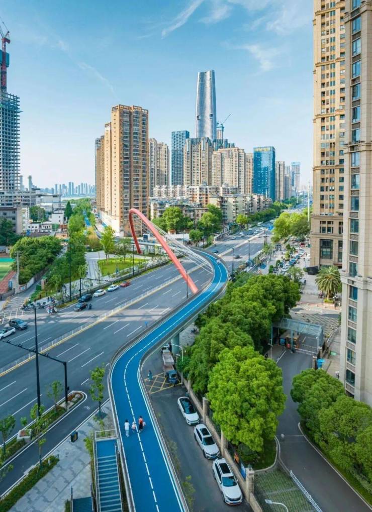空中走廊串联起原本分散的功能区,创造“双首层”的洄游动线,延长了御江尚品·江玺与城市资源的触达路径,打破机动车辆对路权的长期垄断,向非车一族的骑行族、路人开放路权,激发居民与武汉美好同行的积极心态。