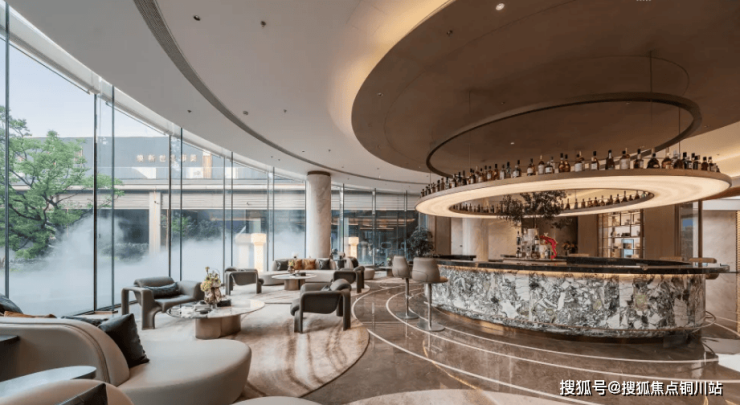 两年前南京首创360°环幕玻璃立面横空出世,放在当下市场依然领先。外立面选用香槟金弧形铝板与大面积定制玻璃,告别常规般的平仄直线,呈现“水景瀑布”般的建筑美学。