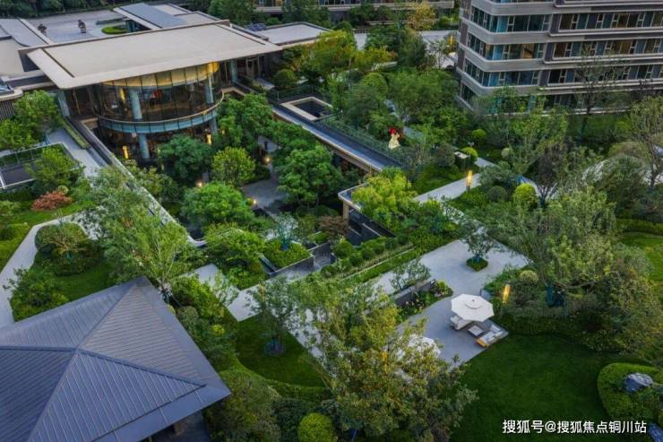 全冠移植的珍稀乔木构成立体林冠、四时花木错落有致,紫薇、乌桕、罗汉松、樱花、 海棠、桂花等徜徉其间,期待在某一处转角,与你不期而遇。