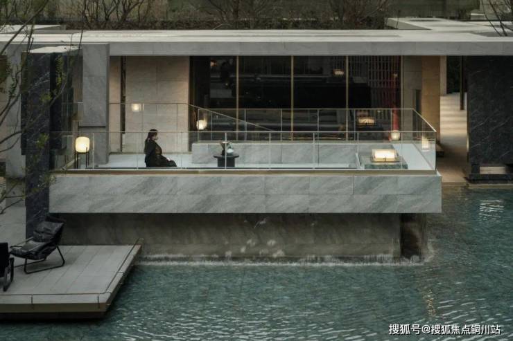 置身于水院的会客厅中,微风拂面,带着林间特有的清新与宁静,乌柏绿岛,悬浮一池清透,光影映射之际,感受空间的延伸、倒映。
