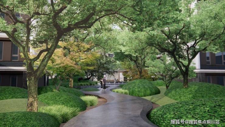 因为整体采取「三级阶梯」式的架空布局,金茂·泮湖满庭的景观园林就好像「依山而建」。