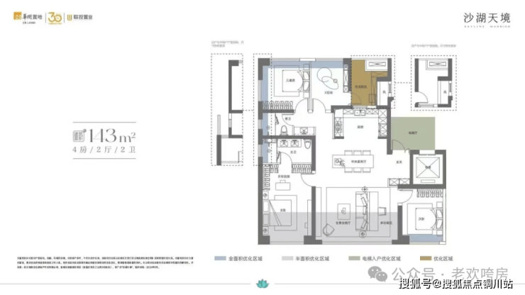而且该户型拥有独立的电梯前厅,再加上客厅两面阳台半赠送、厨房生活阳台半赠送、南向有一个卧室有阳台半赠送,其他卧室均有飘窗全赠送,整体户型可拓展面积较多。