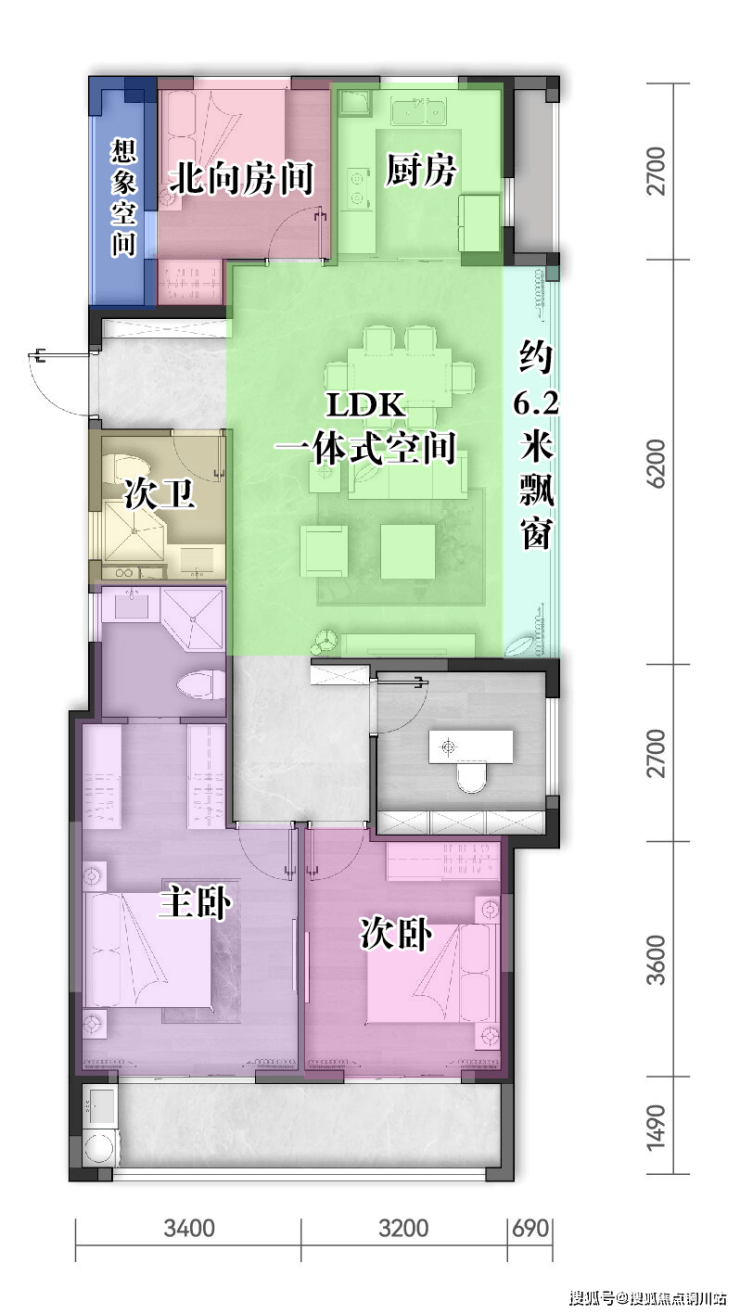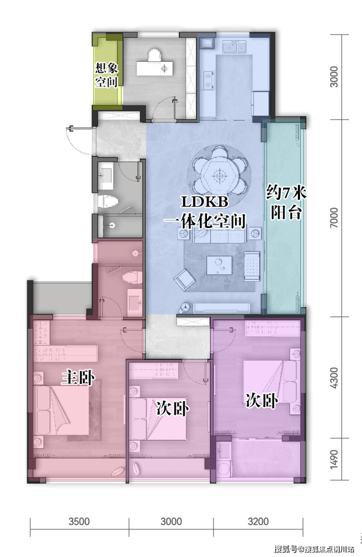 建面约109㎡的户型:与南向面宽等长的双开间阳台,轻松实现主、次卧的阳光平权;一体式LDK+约6米飘窗台,空间游刃有余、张力十足;独立储蓄空间是“家的收纳师”,让生活秩序井然、得心应手。