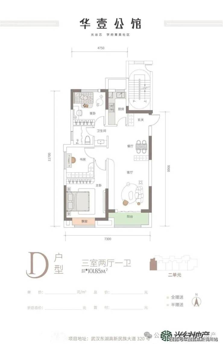 1)户型定位精准:主力户型为101㎡、120㎡三房,其中120㎡可优化至四房,面积段设置旨在满足多代家庭的基本居住空间需求。户型设计规整,注重空间利用率,是市场上经典型、功能型产品的代表。