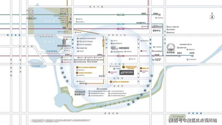 城市公园绿地环伺,项目约4KM范围内已打造成白鹭园、独墅湖生态公园、月墅公园、江滨公园、生命之源广场等约100万方生态绿肺。南侧政府重点打造约253万方吴淞江生态廊道,水系蜿蜒宽阔,滨水景观设计优美,未来将成为具有苏州特色的滨江景观长廊。