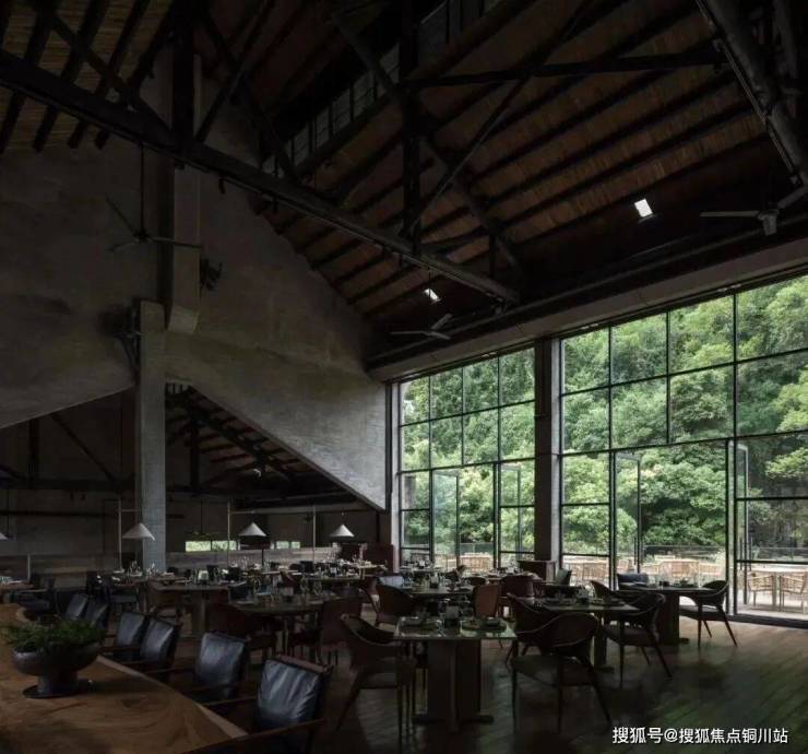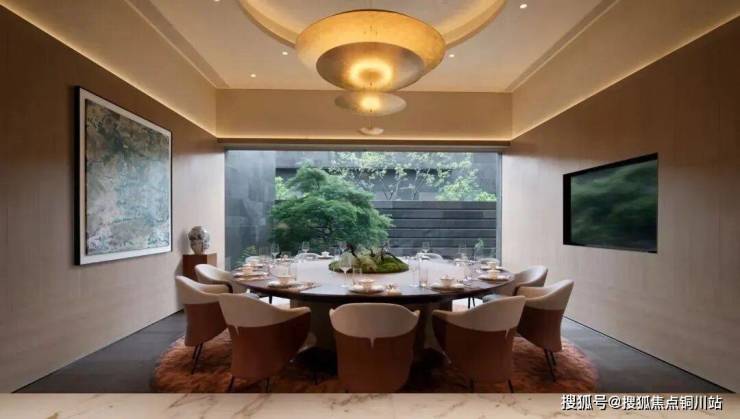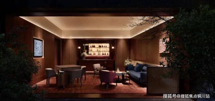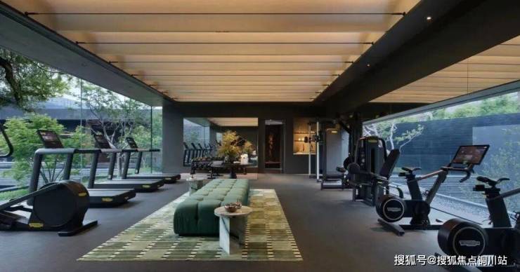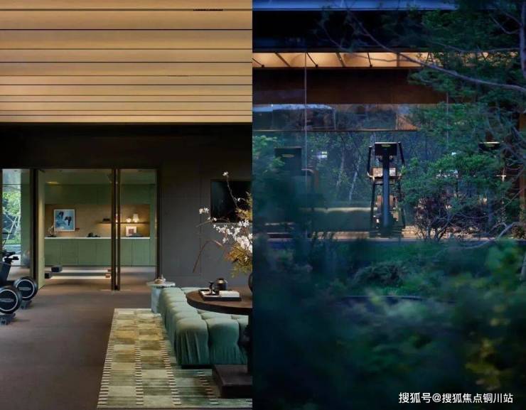 「私宴」独自辟出一方天地,在视线上与下沉庭院联动,「健身房」和「活动工坊」分置于庭院南北两侧,利用庭院的高差打造出“漂浮的瑜伽室”和“树梢上的露台”等具有差异性的空间场景。