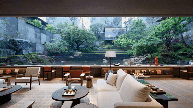 本案通过对传统园林空间关系的提取、东方生活方式的研究、以及在地性人文艺术的思考,融合当代的设计理念,打造了一个气韵生动的生活空间,为义乌献上了一幅“立体山水游园画卷”。