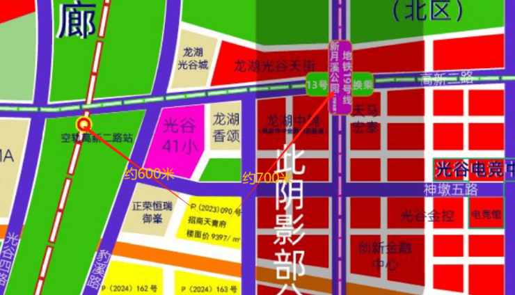 交通:距离空轨高新二路站约500米、距离19号线新月溪公园站(和13号线规划站点)约600米。交通比较方便。