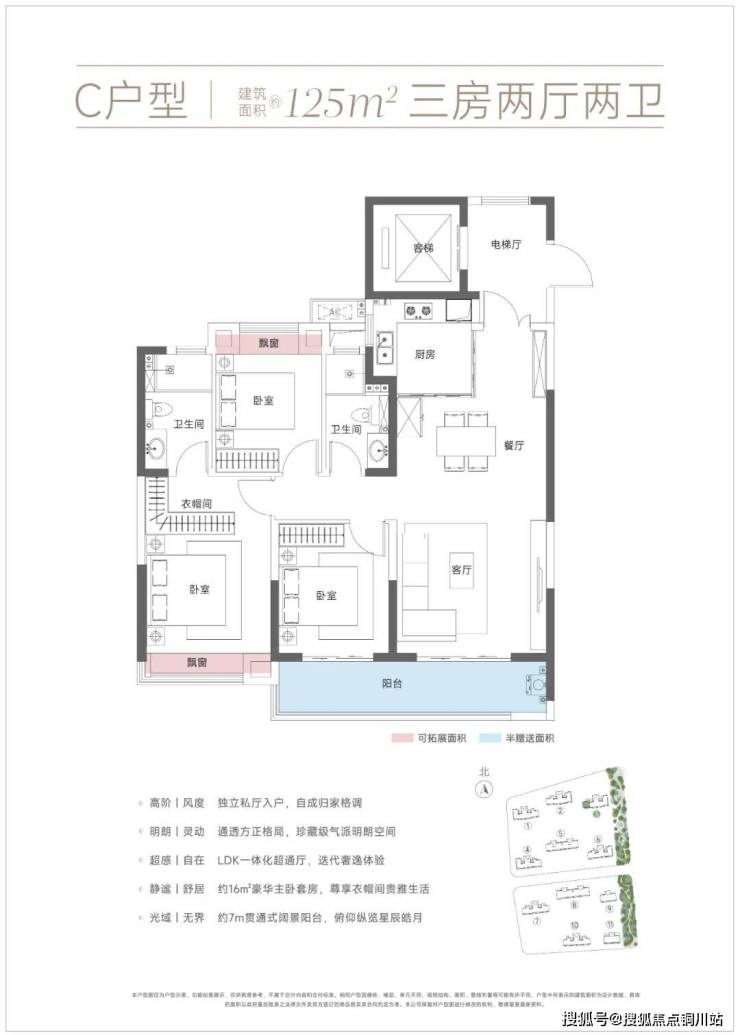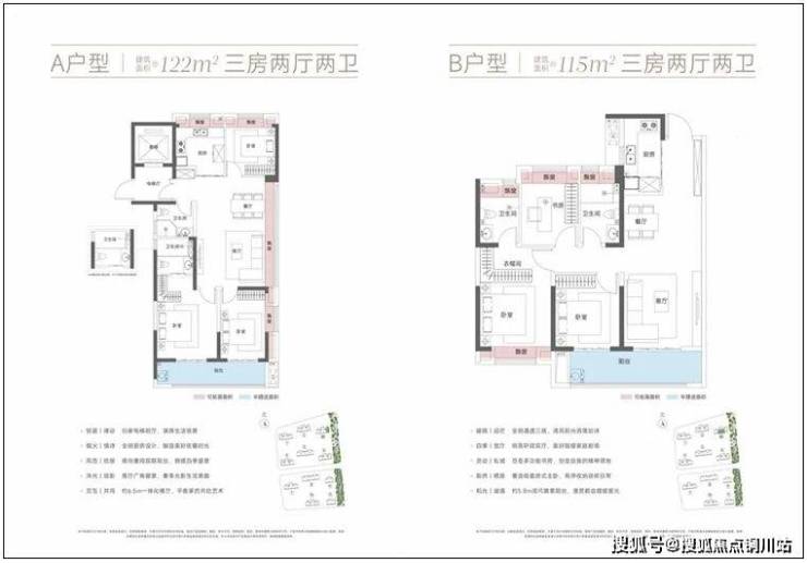 户型面积段在约99-172平米之间,主力户型是120平米左右的经典三房。