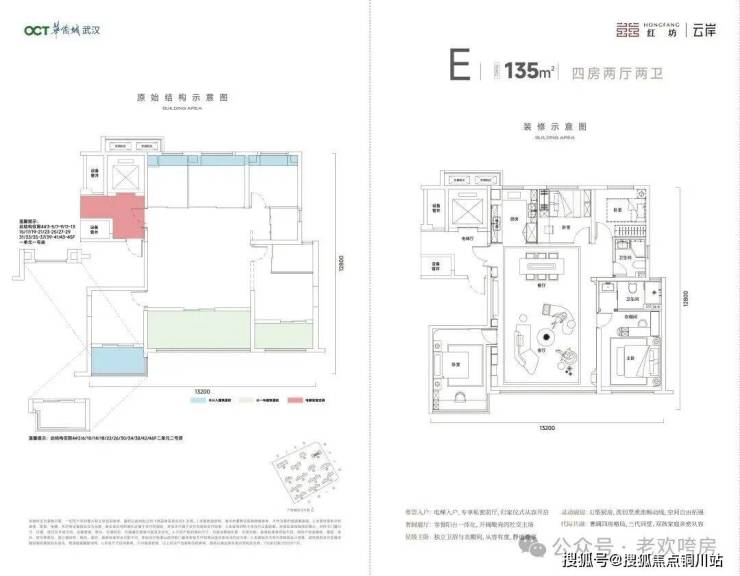 建面约135㎡四房,LDKB一体化通厅,南向超13米采光面,约94%—98%的综合空间实用率,同面积段多出一间房。