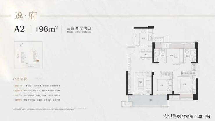 项目最小的98㎡,便是2号楼的中间户和东边户,三开间朝南,动静分区,是深受武汉人喜欢的经典户型。