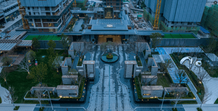 这种秩序感延伸至园林——6米宽风雨连廊(仅部分楼栋),采用黑石水景与乌桕倒影的镜像布局,将高端酒店的尊崇气质,转化为日常归家仪式,在无形中强化圈层身份认同。