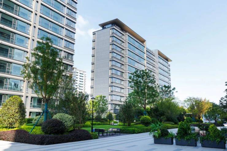 项目对标行业一线标准,旨在革新区域人居体验,比如外立面方面,将现代感的大面积玻璃幕墙,与传统建筑中的平流顶、挑飞檐的建筑制式屋檐相结合,既简洁大方又不失东方气韵。